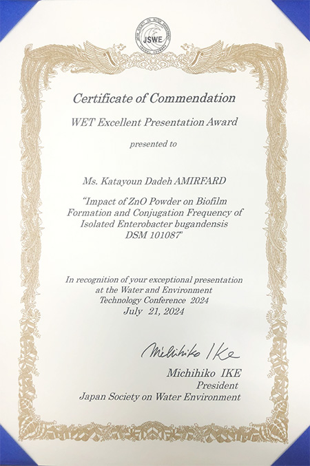 水資源システム学分野 D2 Katayoun Dadeh Amirfardさん,