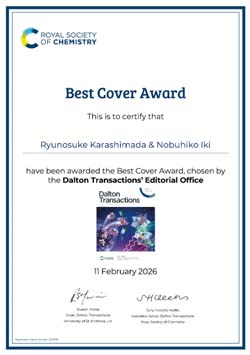 2026/02/16 唐島田龍之介助教,2025 Dalton Transactions’ "Best Cover Award" 受賞