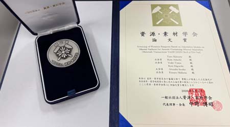 Materials Transactions に掲載された、ヒ素含有銅鉱物の分離のための浮選剤探索における第一原理計算に基づく論文が、特に優秀なものとして表彰されたものです。
