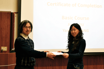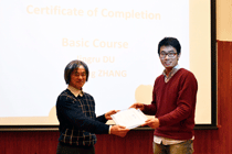 東日本大震災による様々な影響により留学生の来日や滞在も困難な状況が続いた1年でしたが、震災後に来日し基本コースに加わった2名の留学生が、この度めでたく修了、他プログラム生からの祝福の中、修了証書を受け取りました。