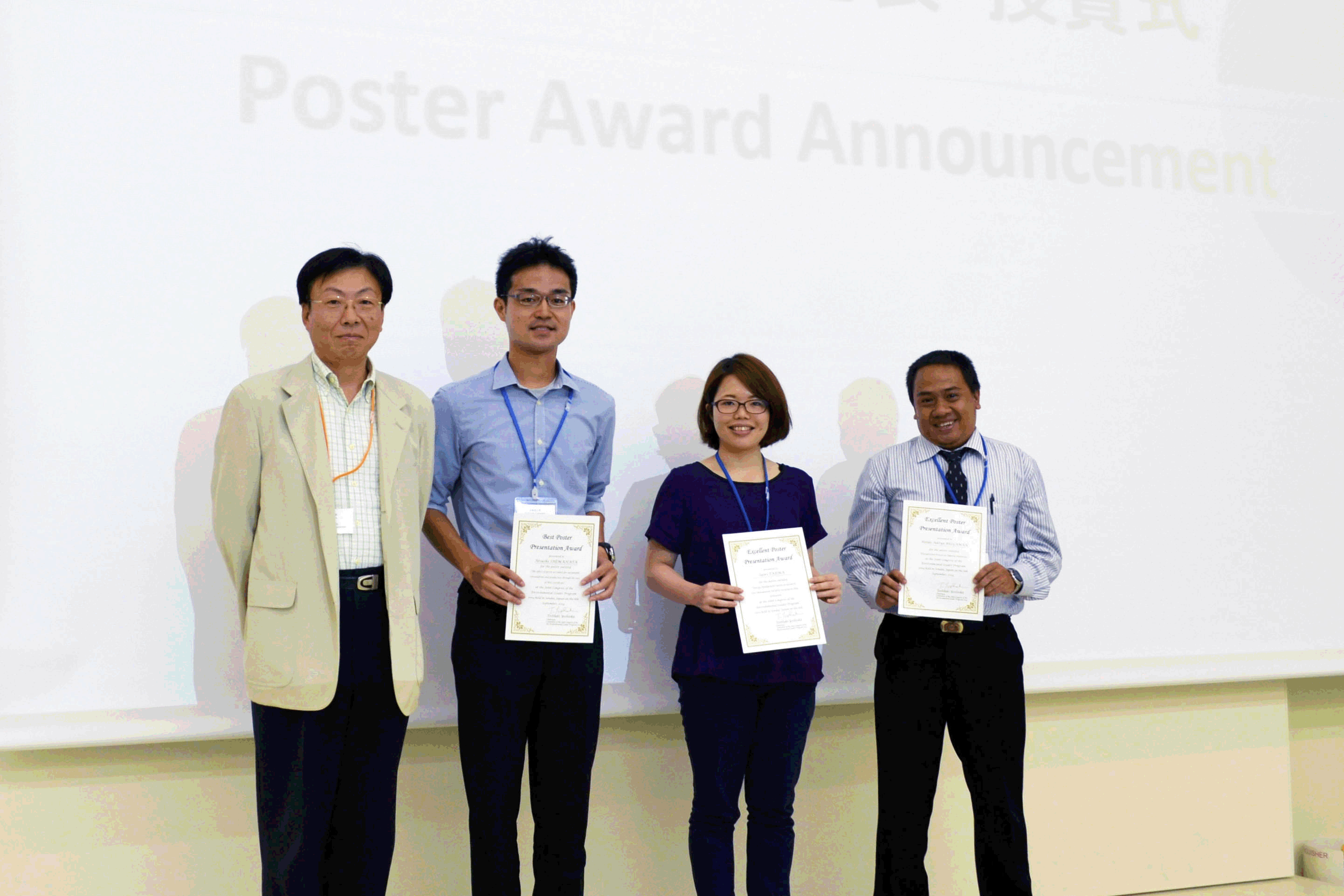 国内の環境リーダー育成プログラム実施の10大学が東北大学に介し、各大学が活動報告を行い、基調講演、ポスターセッションのほか、人材育成の展望についての意見交換を行いました。ポスターセッションでは、最優秀ポスター賞を北海道大学が、優秀ポスター賞を熊本大学、神戸大学、早稲田大学の学生らが受賞しました。
